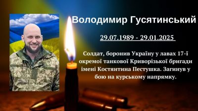 Минає річниця з дня загибелі нашого випускника Володимира ГУСЯТИНСЬКОГО. Володимир Гусятинський боронив Україну у лавах 17-ї окремої танкової Криворізької бригади...